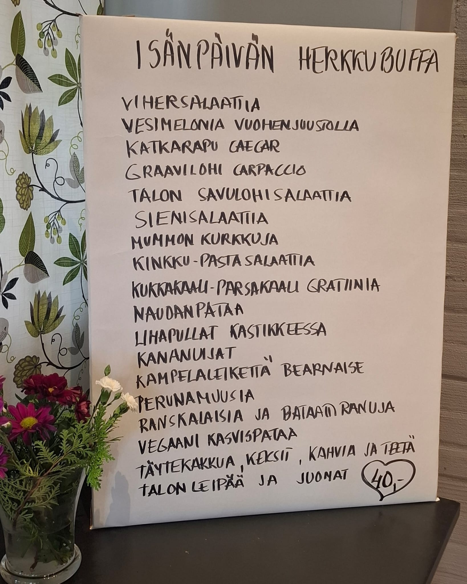 Muista varata paikkasi ennakkoon! Buffetin hinta: 40€